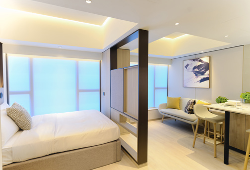Experience comfort and style in our spacious Studio Suite (551 sq. ft. gross area) at a special opening rate of HK$33,600 per month.