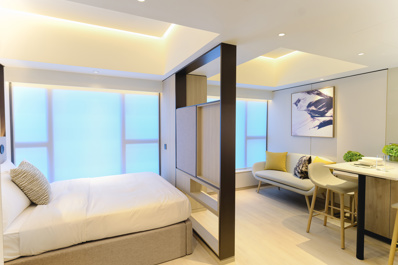 Experience comfort and style in our spacious Studio Suite (551 sq. ft. gross area) at a special opening rate of HK$33,600 per month.